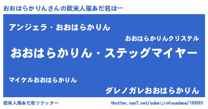 | 意味不明あだ名 | 『住所不定無職おおはらかりん(74歳)』 |