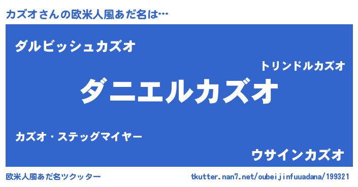 | 男性向けラノベタイトル風あだ名 | 『おまえをオタクにしてやるから、俺をカズオにしてくれ! 』 |