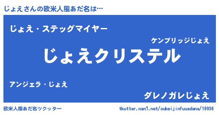 | 女子向けラノベタイトル風あだ名 | 『じょえ伯爵の花嫁』 |