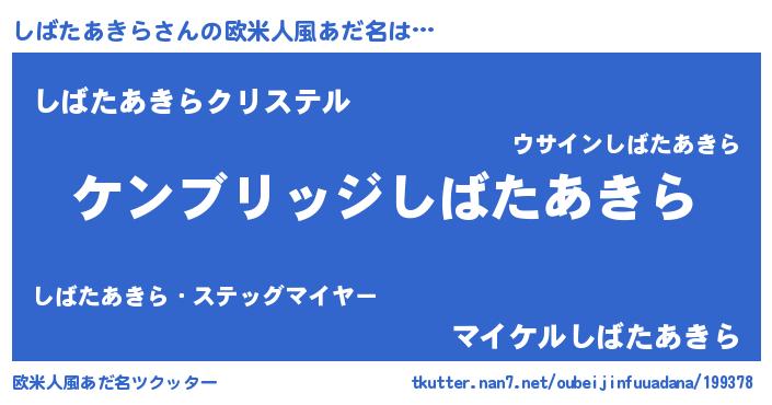 | 男性向けラノベタイトル風あだ名 | 『Re:しばたあきらから始める異世界生活』 |