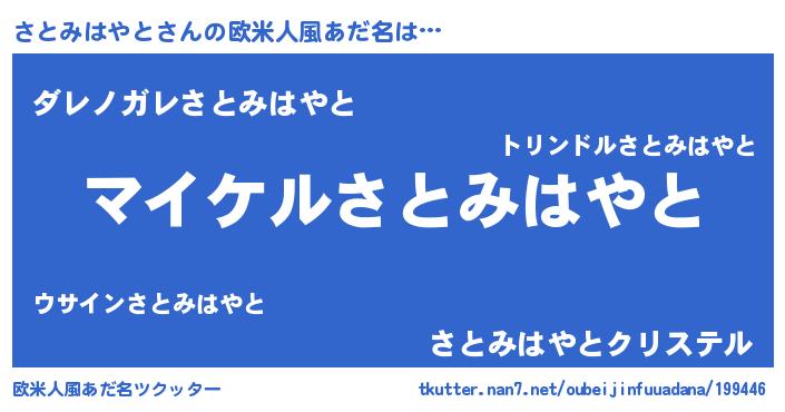 | 胡散臭い通販商品みたいなあだ名 | 『モテモテ間違いなし霊験あらたかなお札…その名も「さとみはやと」』 |