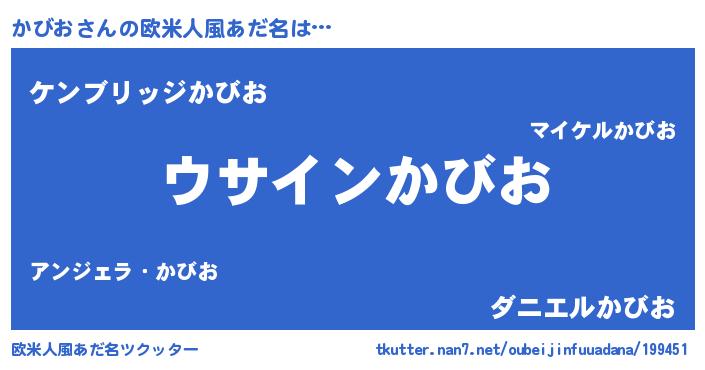 | 男性向けラノベタイトル風あだ名 | 『かびおの嫁は女の子じゃないと思った?』 |