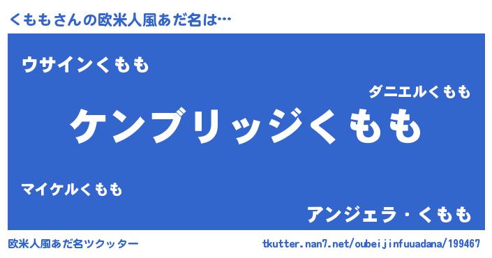 | 意味不明あだ名 | 『自称くもも』『とにかく怪しいくもも』 |