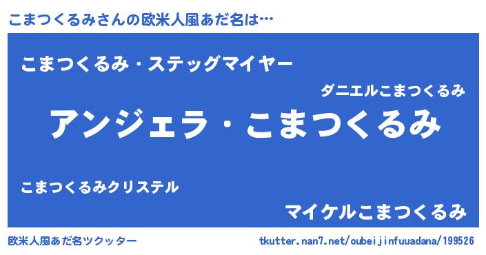 | 男性向けラノベタイトル風あだ名 | 『こまつくるみに滅ぼされるだけの簡単なお仕事です』 |
