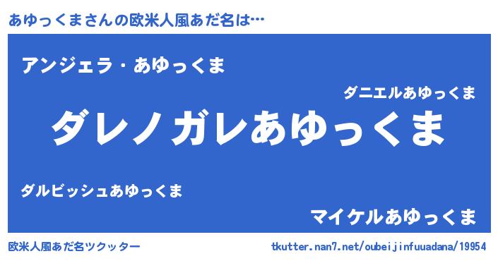 | 意味不明あだ名 | 『住所不定無職あゆっくま(98歳)』 |