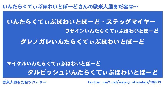 | 意味不明あだ名 | 『住所不定無職いんたらくてぃぶほわいとぼーど(9歳)』 |