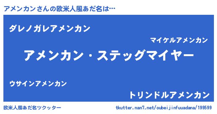 | 男性向けラノベタイトル風あだ名 | 『緋弾のアメンカン』『アメンカンの憂鬱』 |