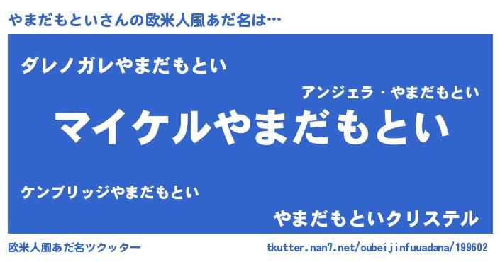 | 男性向けラノベタイトル風あだ名 | 『ヤマダモトイアートオンライン』 |