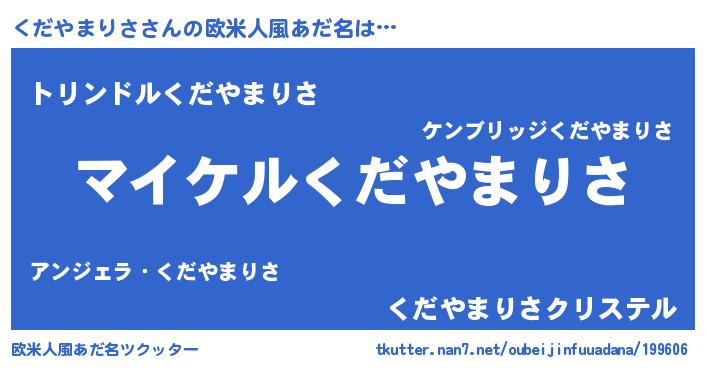 | 男性向けラノベタイトル風あだ名 | 『クダヤマリサアートオンライン』 |