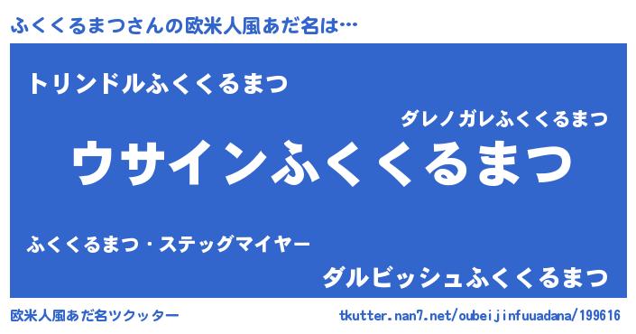 | 男性向けラノベタイトル風あだ名 | 『ふくくるまつの嫁は女の子じゃないと思った?』 |