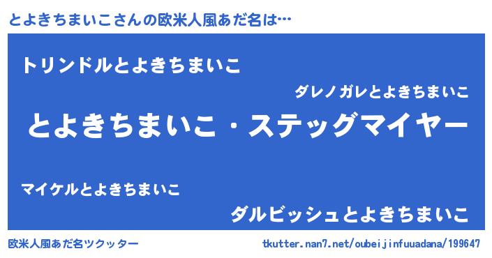 | 男性向けラノベタイトル風あだ名 | 『うちのとよきちまいこが世界を掌握している!』 |