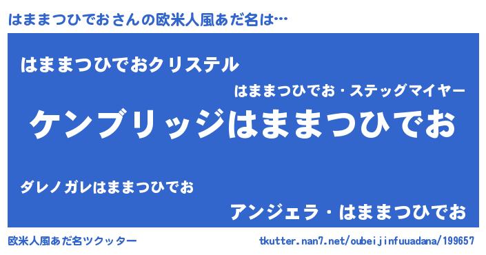 | 男性向けラノベタイトル風あだ名 | 『Re:はままつひでおから始める異世界生活』 |