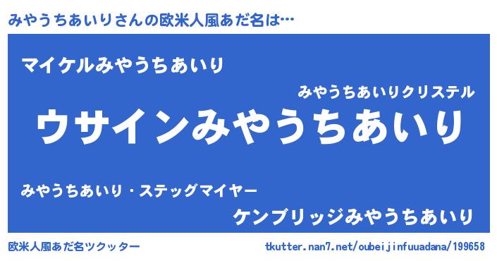 | ポケモン風あだ名 | 『ヒミヤウチアイリ』『ミヤチュウ』 |
