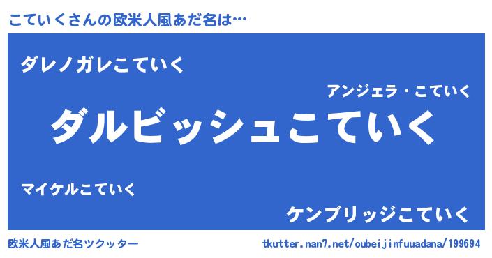 | 男性向けラノベタイトル風あだ名 | 『こていくという概念が存在しない退屈な世界 』 |