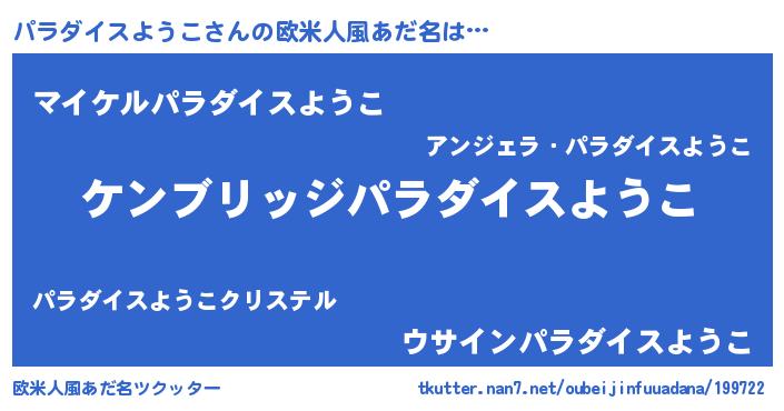 | 男性向けラノベタイトル風あだ名 | 『Re:パラダイスようこから始める異世界生活』 |