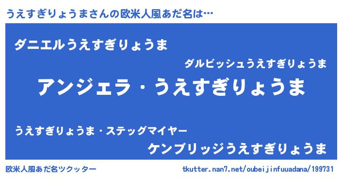 | 男性向けラノベタイトル風あだ名 | 『はたらくうえすぎりょうまさま!』 |