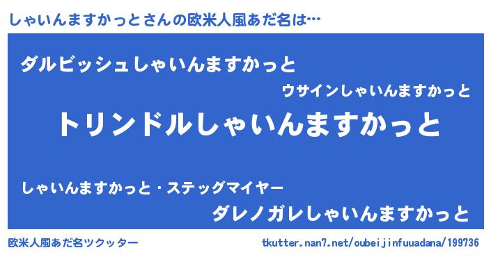 | 男性向けラノベタイトル風あだ名 | 『しゃいんますかっと~年齢イコール彼女いない歴の魔法使い~』 |