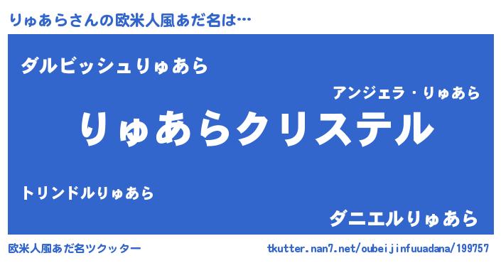 女子向けラノベタイトル風あだ名 | 『りゅあらの婚約者』 |