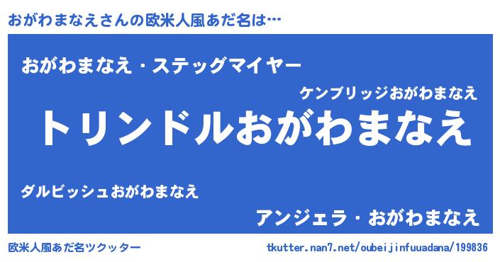 | 男性向けラノベタイトル風あだ名 | 『転生したらおがわまなえだった件』 |