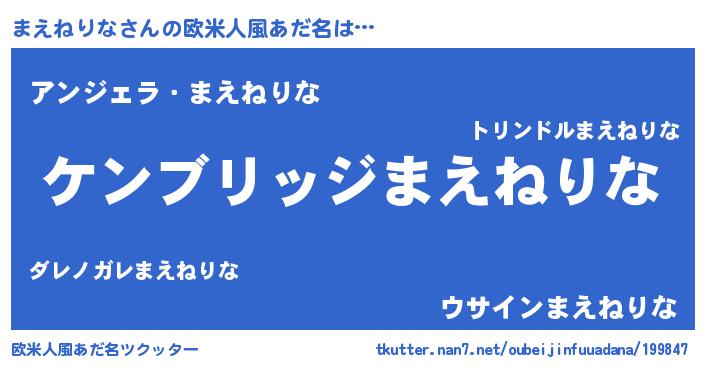 | 男性向けラノベタイトル風あだ名 | 『Re:まえねりなから始める異世界生活』 |