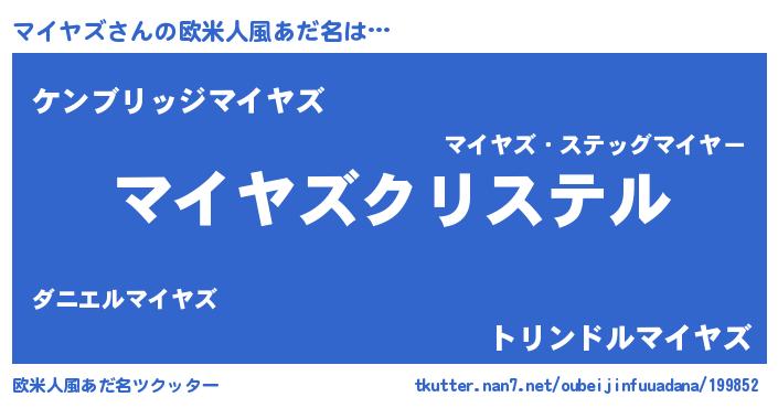 | 女子向けラノベタイトル風あだ名 | 『マイヤズ伯爵の花嫁』『マイヤズ恋絵巻』 |