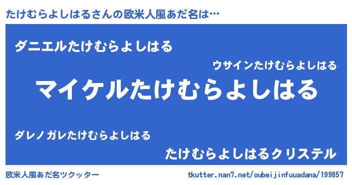 | 男性向けラノベタイトル風あだ名 | 『たけむらよしはるの憂鬱』 |