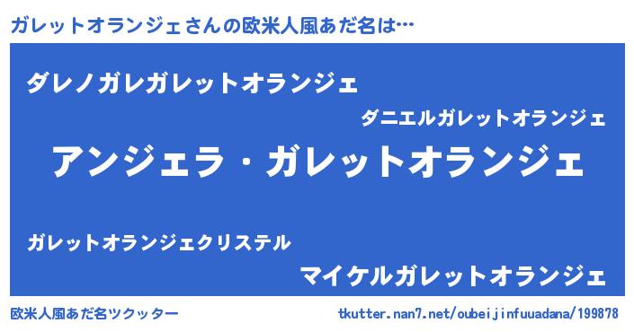 | 意味不明あだ名 | 『住所不定無職ガレットオランジェ(9歳)』 |