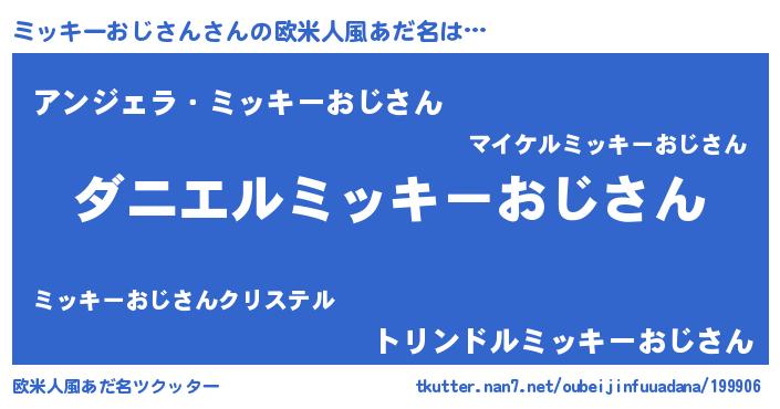 | 意味不明あだ名 | 『眠気覚ましガムミッキーおじさん味』 |