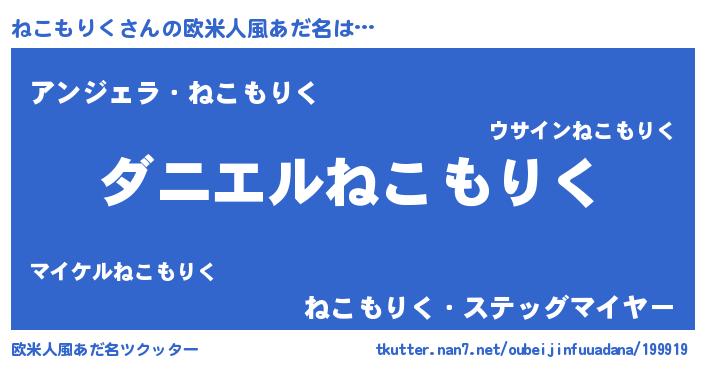 | ヒーロー風カッコイイあだ名 | 『天空の使者ねこもりく』『天弓騎士ネコ』 |