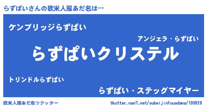 | ファンタジー風あだ名 | 『エターナルラズパイー』『ゼラズトゥ』 |