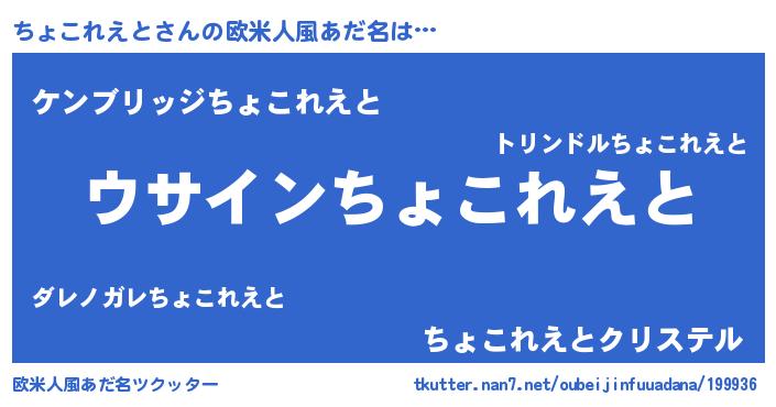 | 意味不明あだ名 | 『とにかく怪しいちょこれえと』 |