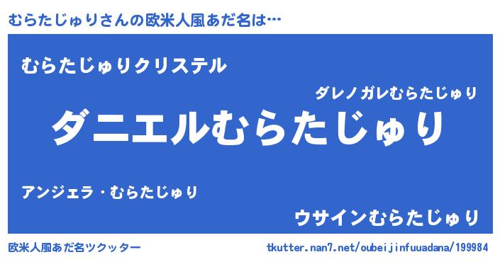 | 男性向けラノベタイトル風あだ名 | 『おまえをオタクにしてやるから、俺をむらたじゅりにしてくれ! 』 |