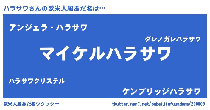 | 男性向けラノベタイトル風あだ名 | 『ハラサワアートオンライン』 |