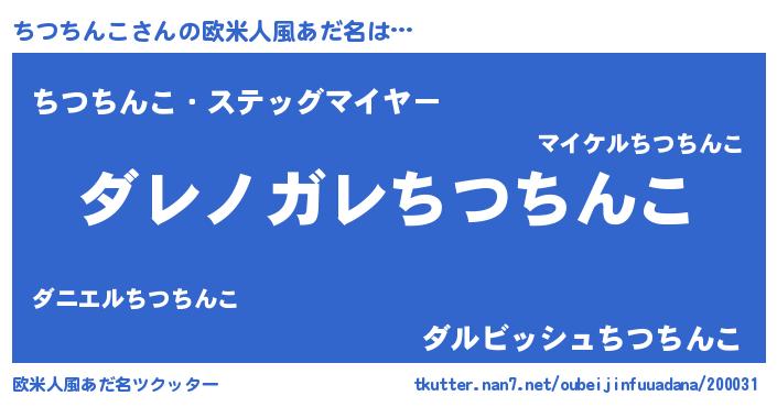 | 意味不明あだ名 | 『住所不定無職ちつちんこ(93歳)』 |