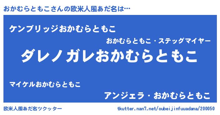 | 女子向けラノベタイトル風あだ名 | 『乙女ゲームの破滅フラグしかない悪役おかむらともこに転生してしまった…』 |