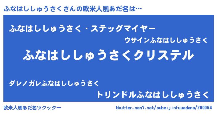 | 意味不明あだ名 | 『ふなはししゅうさくフォーエバー』 |