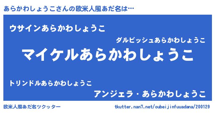 | ヒーロー風カッコイイあだ名 | 『スーパーアラカワショウコ』 |