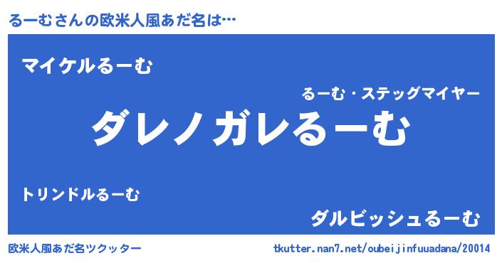 | 男性向けラノベタイトル風あだ名 | 『魔弾の王とるーむ』『るーむの憂鬱』 |