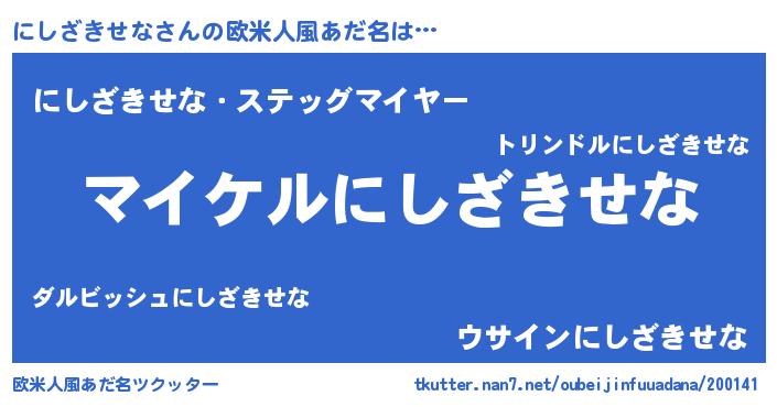 | 男性向けラノベタイトル風あだ名 | 『にしざきせなの憂鬱』 |