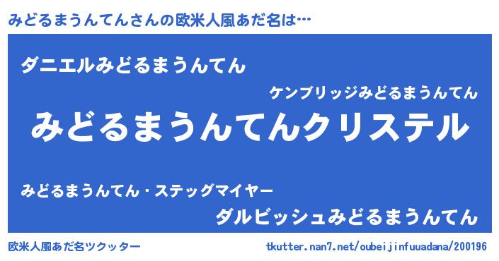 | 男性向けラノベタイトル風あだ名 | 『うちの娘の為ならば、俺はもしかしたらみどるまうんてんも倒せるかもしれない。』 |