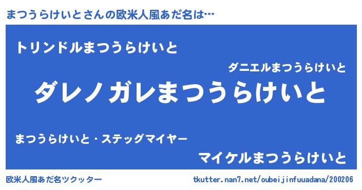 | 料理風あだ名 | 『まつうらけいとのカルパッチョ風』 |