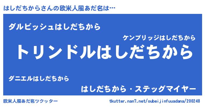 | 胡散臭い通販商品みたいなあだ名 | 『前代未聞の健康食品…その名も「はしだちから」』 |