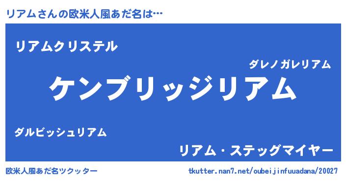 | 男性向けラノベタイトル風あだ名 | 『Re:リアムから始める異世界生活』 |