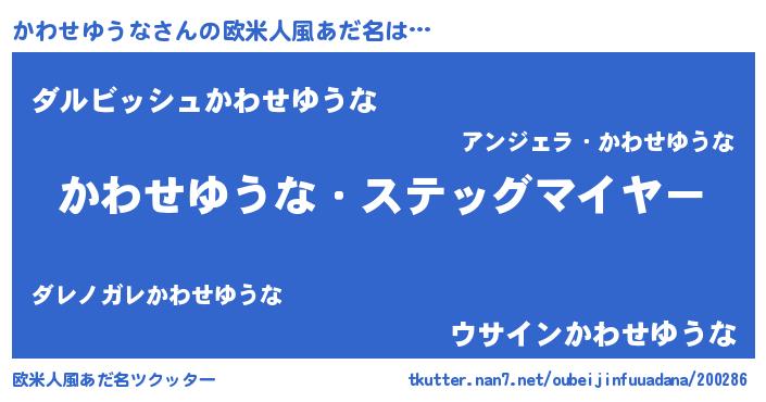| ヘコむあだ名 | 『かわせゆうな(震え声)』『かわお』 |
