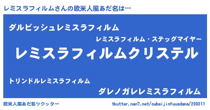 | 意味不明あだ名 | 『レミスラフィルムフォーエバー』 |