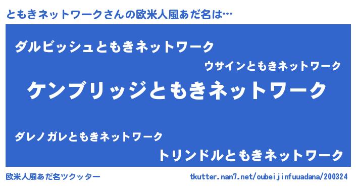 | 女子向けラノベタイトル風あだ名 | 『闇のともきネットワーク』 |