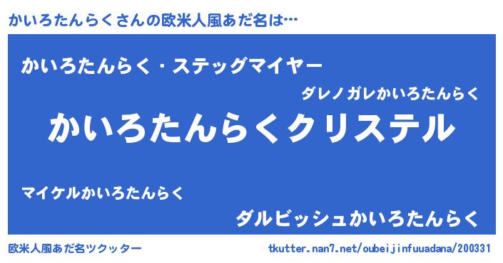 | 意味不明あだ名 | 『かいろたんらくフォーエバー』 |