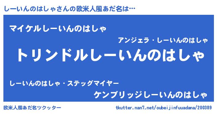 | 男性向けラノベタイトル風あだ名 | 『シーインノハシャスレイヤー』 |