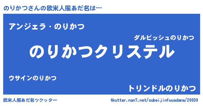 | 男性向けラノベタイトル風あだ名 | 『やはりのりかつの青春ラブコメはまちがっている 』 |