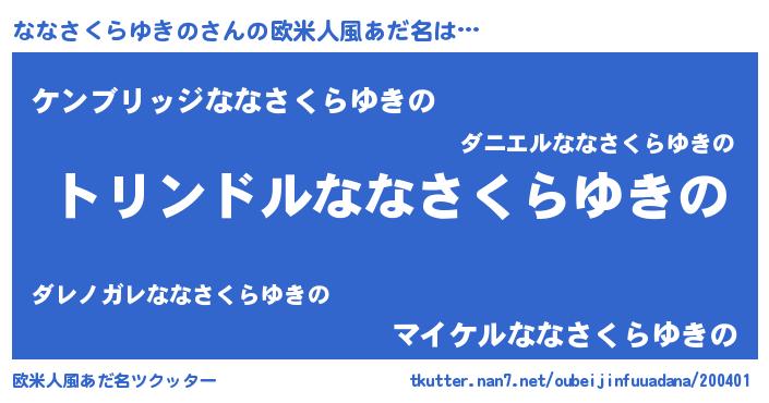 | 女子向けラノベタイトル風あだ名 | 『ななさくらゆきのの玉の輿計画!』 |